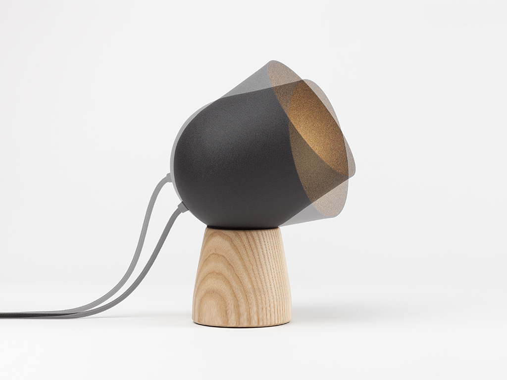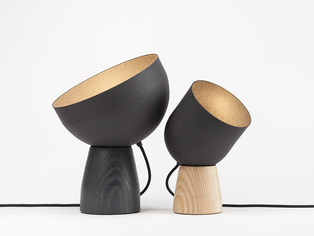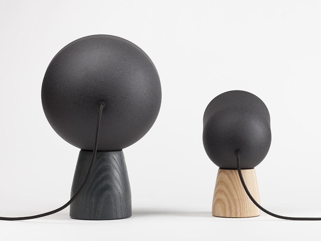 A lamp which allows you to direct your light source using a simple magnet system. Exists in 2 different formats using powder coated steel & an ash base.
