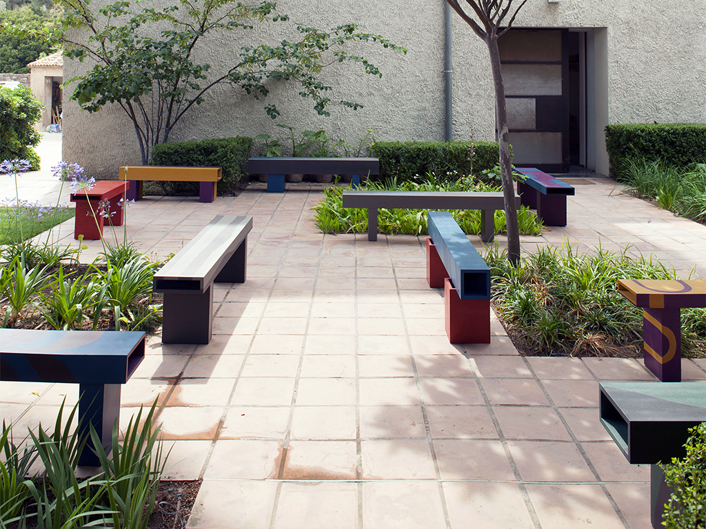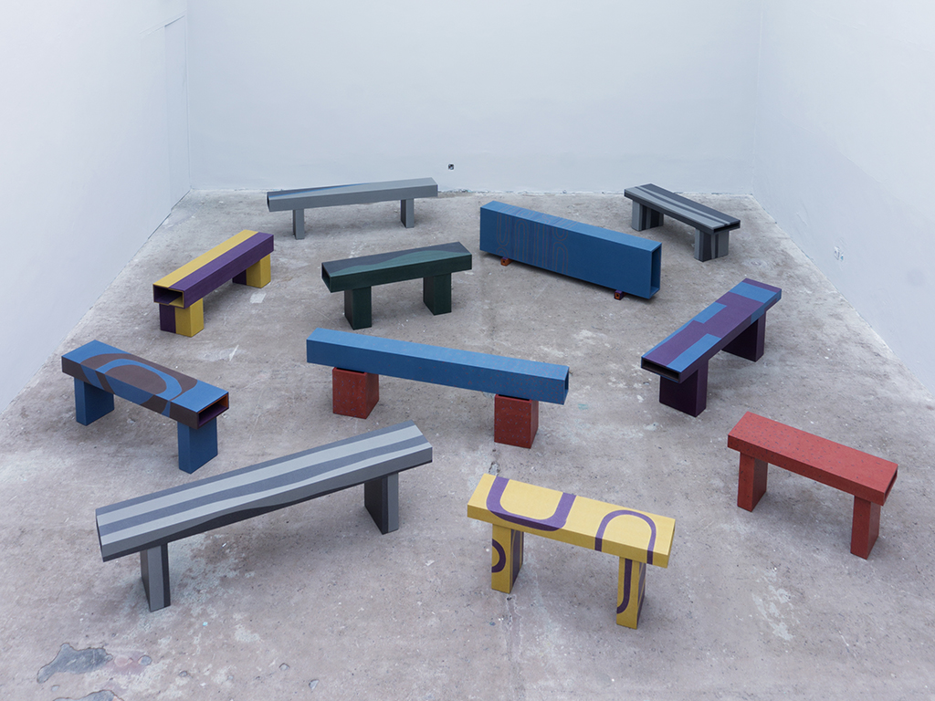 Panel Discussion is a project conducted during a year long design residency at the Villa Noailles in Hyeres. It acknowledges the history of Villa Noailles as both a place of relaxation & entertainment. Using a single material, Valchromat, the designers developed benches that bring people together & encourage communal activities. In 2017 it was awarded the Swiss Design Prize. Project in collaboration with Max Frommeld.
